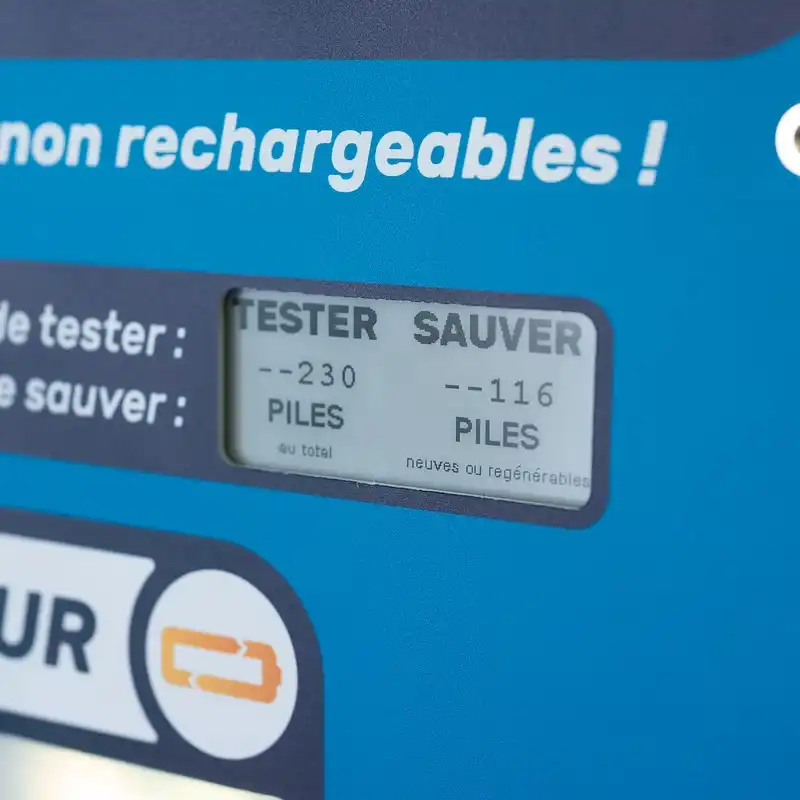 Un compteur affiche en temps réel le nombre de piles testées par les usagers et sauvées grâce à Regenbox.