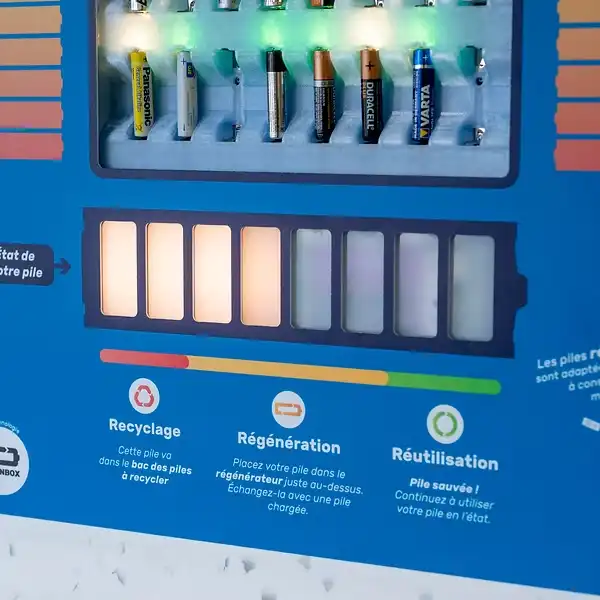 Avec RegenBox, vous sensibilisez vos collaborateurs pour qu’ils ne jettent plus des piles encore utilisables.
